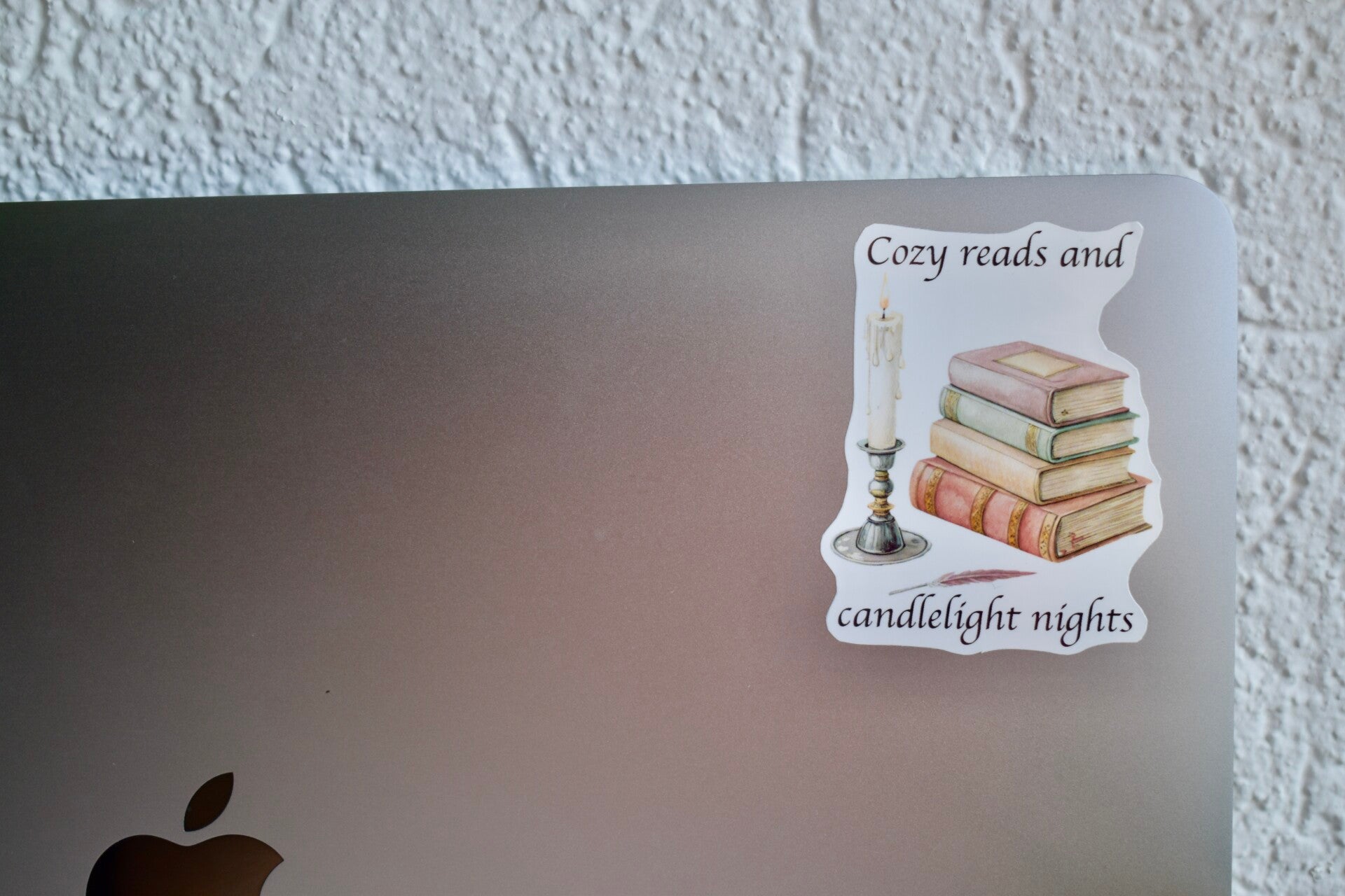 Of je nu leest bij kaarslicht of gewoon wegdroomt bij het idee, deze sticker is een warme knuffel in plakkerige vorm.