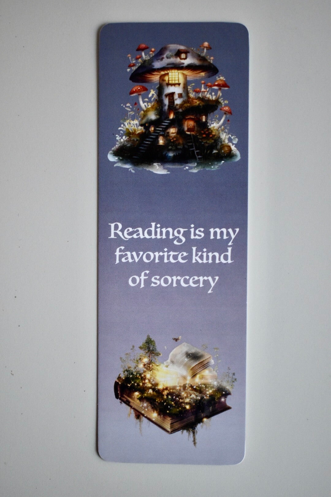 Deze boekenlegger met de tekst “Reading is my favorite kind of sorcery” viert de magie van verhalen. Voor lezers die weten dat een goed boek je net zo kan betoveren als een spreuk.