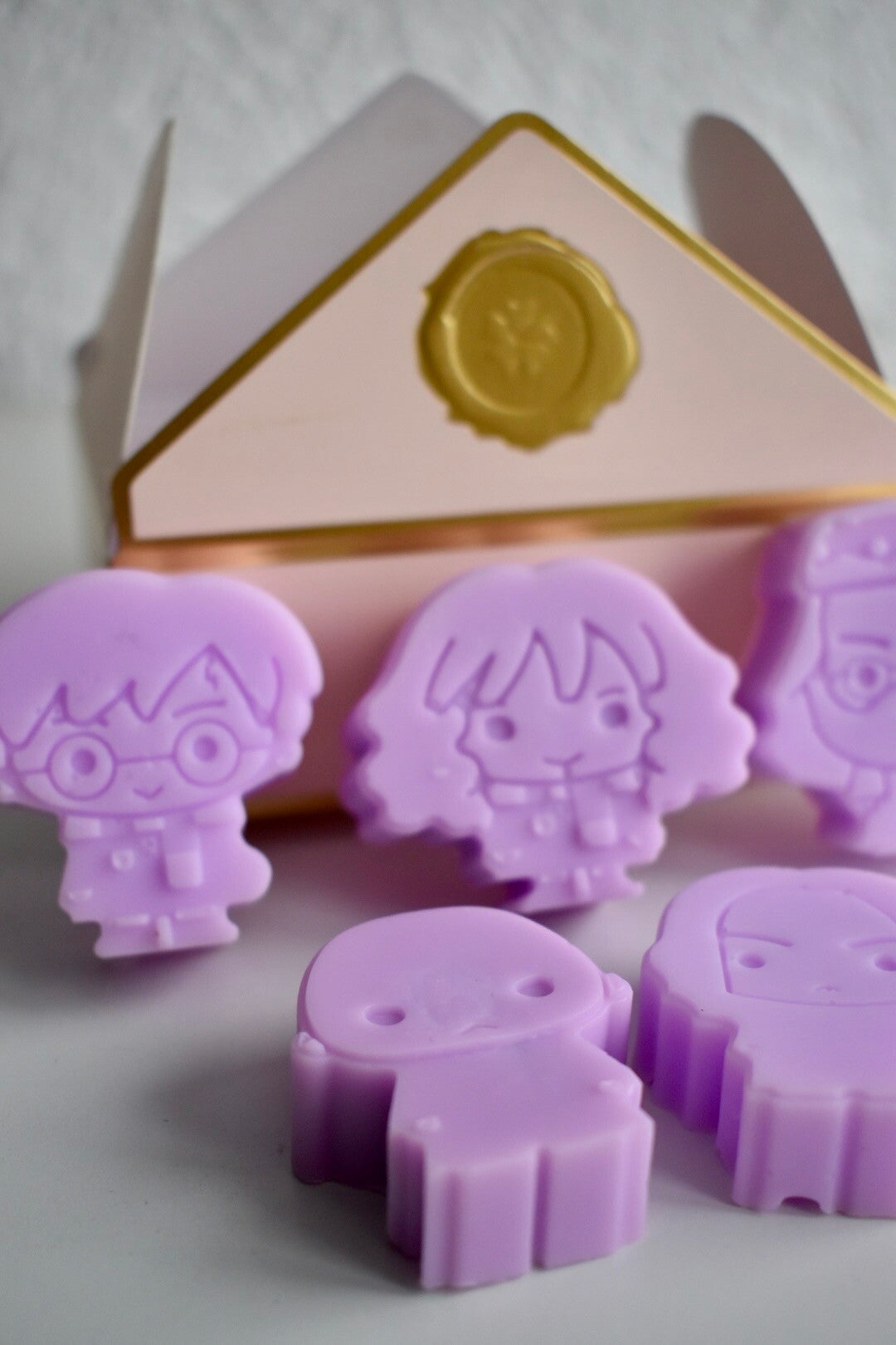 Dit doosje bevat 5 lavendelgeurende handzeepjes, elk met een verrassend Harry Potter-design.
