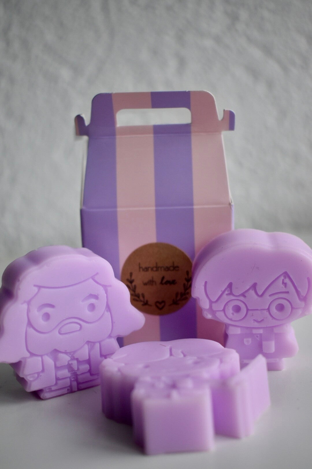 Dit doosje bevat 3 lavendelgeurende handzeepjes, elk met een verrassend Harry Potter-design.